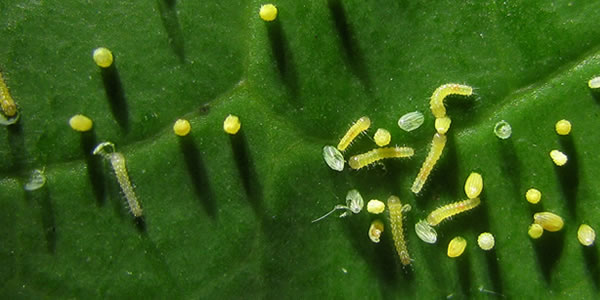 那么,你见过刚从卵中孵化出来的幼虫吗?提到大斑蝶的幼虫,大家可能会想到青毛虫,但刚孵化出来的幼虫的颜色并不是蓝色或绿色。而且,仔细观察会发现大斑蝶的幼虫全身长满了毛。亲自用眼睛观察,你会发现许多以前没有注意到的事实,对生物的兴趣也会不断增加。