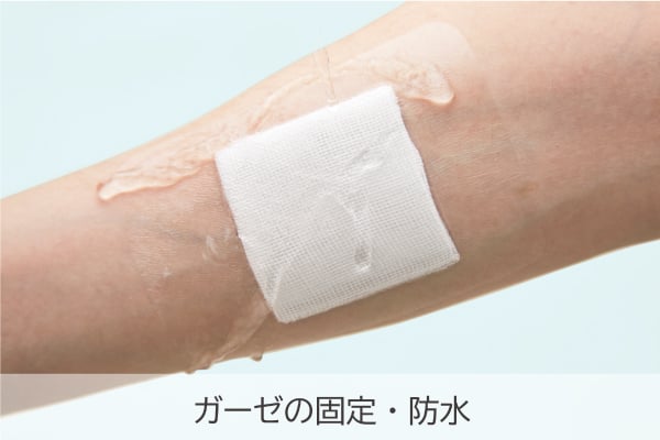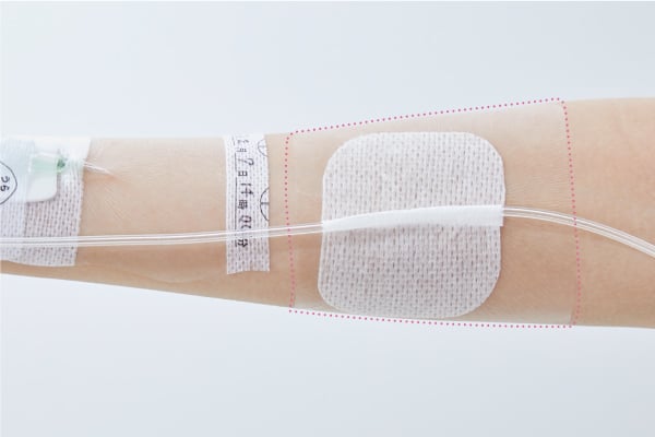 basesilon 是一种在固定导管等时使用粘着力强的胶带,并在其下贴上薄膜敷料的使用方法。(如果作为 basesilon 使用,请选择剥离刺激较少的薄膜敷料。)通过预先贴上剥离刺激较少的薄膜敷料,可以减轻剥离时对皮肤的负担。④其他用途